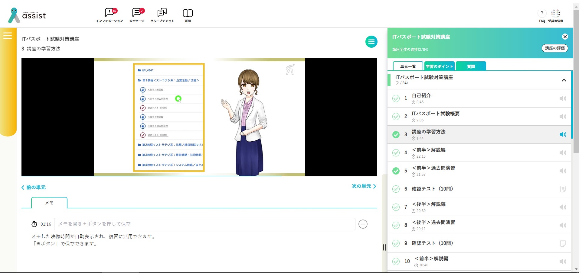 「学習スケジュールを簡単に作成し管理できる機能」、「PCやスマートフォンでどこでも映像教材を視聴できる機能」、「わからないことは気軽に質問し、個別サポートを受けることができる機能」、それらすべてを、新たに導入された学習マネジメントシステム「assist」に集約しました。さらに、公式サイトも刷新し、「マイページ機能」を新たに搭載しました。
