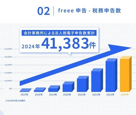 ・クラウド型税務申告ソフトとして「freee申告」を通じた税務申告数は41,383件となりました