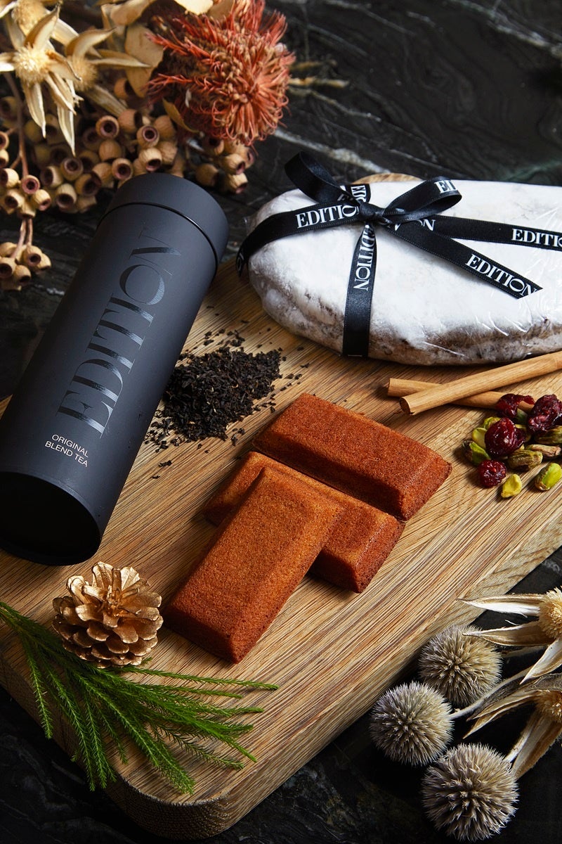贅沢な焼き菓子の詰め合わせは、ご家族やご友人へのホリデーギフトやパーティーの手土産におすすめです。今年のセレクションは、自家製シュトーレンに自家製フィナンシェ、そしてご一緒にお愉しみいただく香り高いEDITIONオリジナルブレンドティー。クリスマスのお祝いに欠かせないアイテムと共に心躍る季節をお過ごしください。