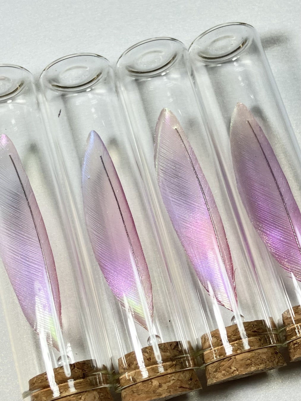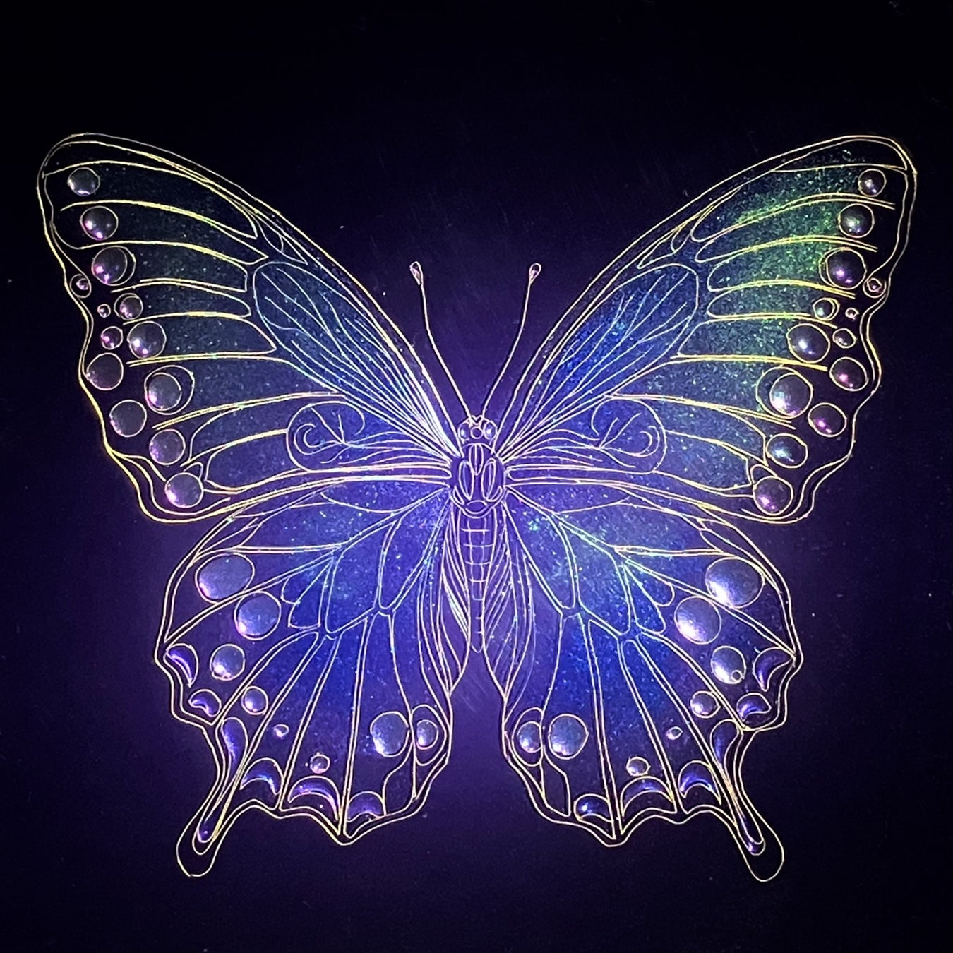 作品の色使いは構造色を多重彩色で再現し、見る角度や光の当たり方で異なる色が見え隠れします。同じ室内でも昼と夜とで色の印象が変わるため、画像ではすべてを伝えきれません。ぜひ、この機会に何度もお越しいただき、作品の魅力を感じてください。