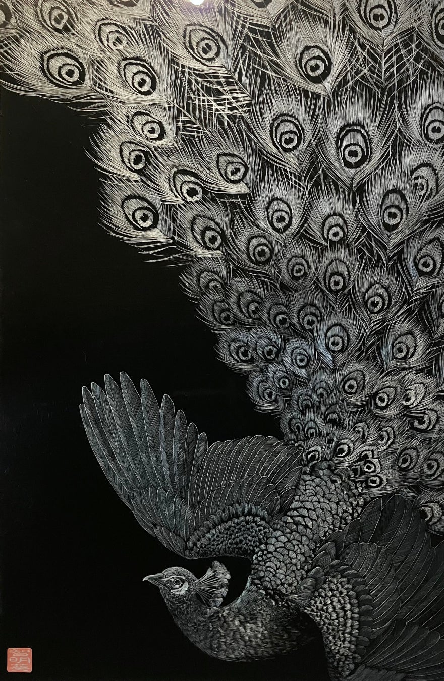 2025年制作の「monochrome ー孔雀」をはじめ、最新の作品を10点以上展示販売いたします。