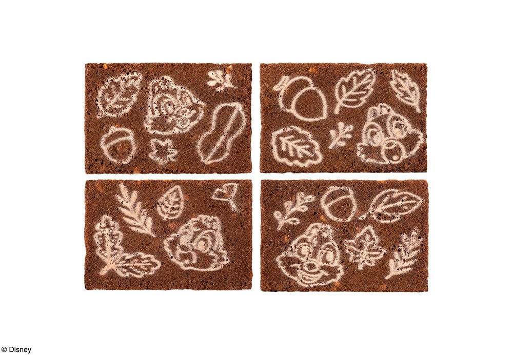 いたずらも木の実も大好きななかよしコンビ「チップ」と「デール」が描かれたショコラクッキーサンド。アーモンド・マカダミア・ピーナッツ、3種類の香ばしいナッツと芳醇なカカオを合わせたナッティショコラ生地で、ふんわりホイップしたヘーゼル香るミルクショコラをサンドしました。カリッと頬張れば、トリプルナッツの香ばしい香りがお口いっぱいあふれます。