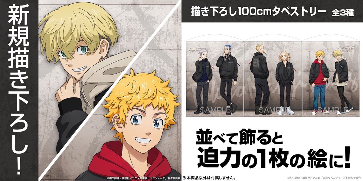 TVアニメ『東京リベンジャーズ』より、新規描き下ろしイラストを使用した「タペストリー」「アクリルスタンド」などのグッズが登場!