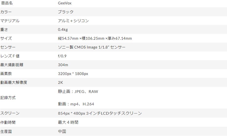 GeeVoxは3200px×1800pxの高解像度。本格的な撮影も、十分に可能なスペックです。さらに暗い状況下でも驚きの画質です。