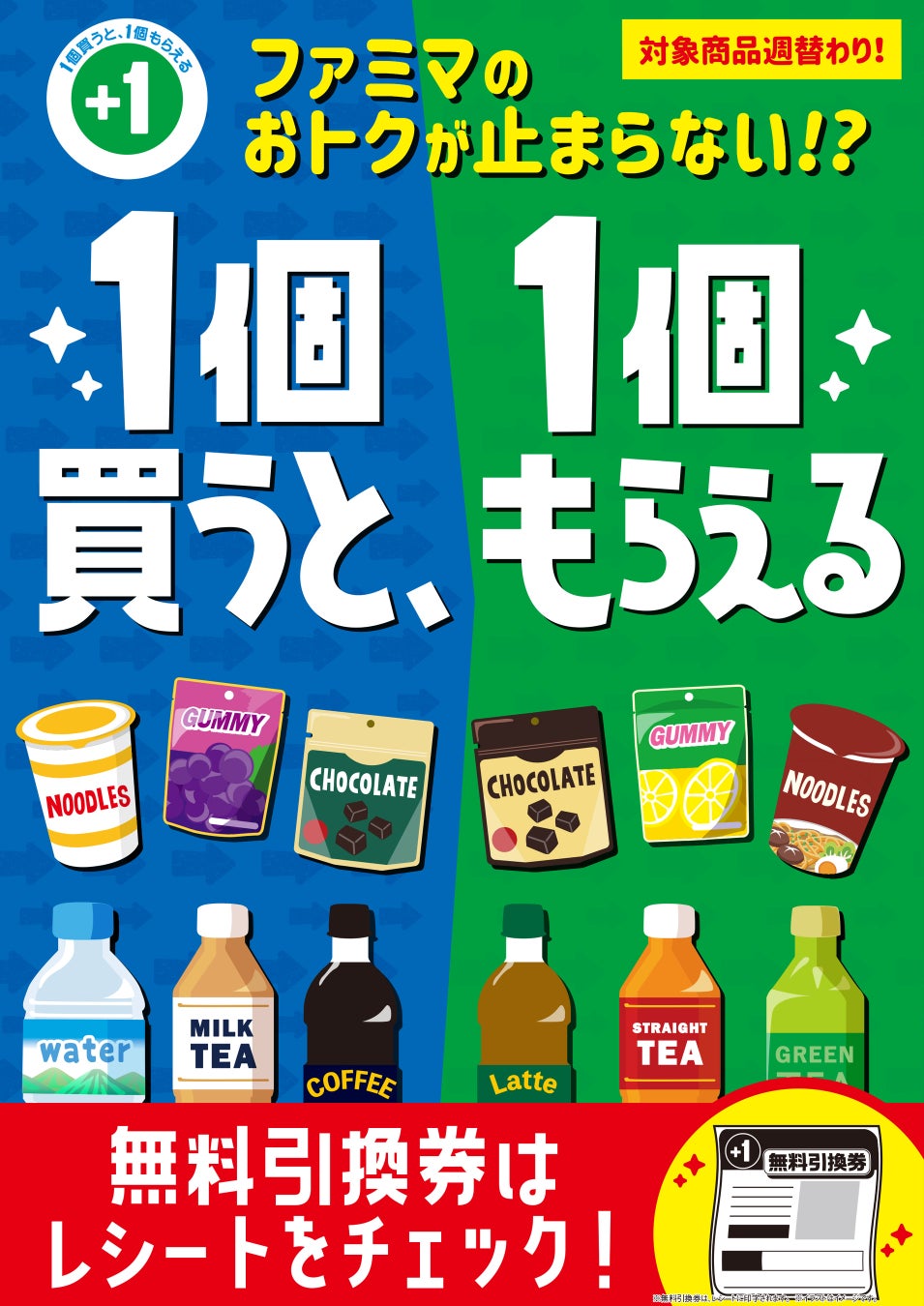 期間中、レジ横ケース内の揚げ物・お惣菜の対象商品を2個購入ごとに、「ファミから(醤油または塩)」を1個1円で買える引換券(97円引きレシートクーポン)がレシートに印字されます。引換券(レシートクーポ ン)は、引換期間内にレジまでお持ちください。