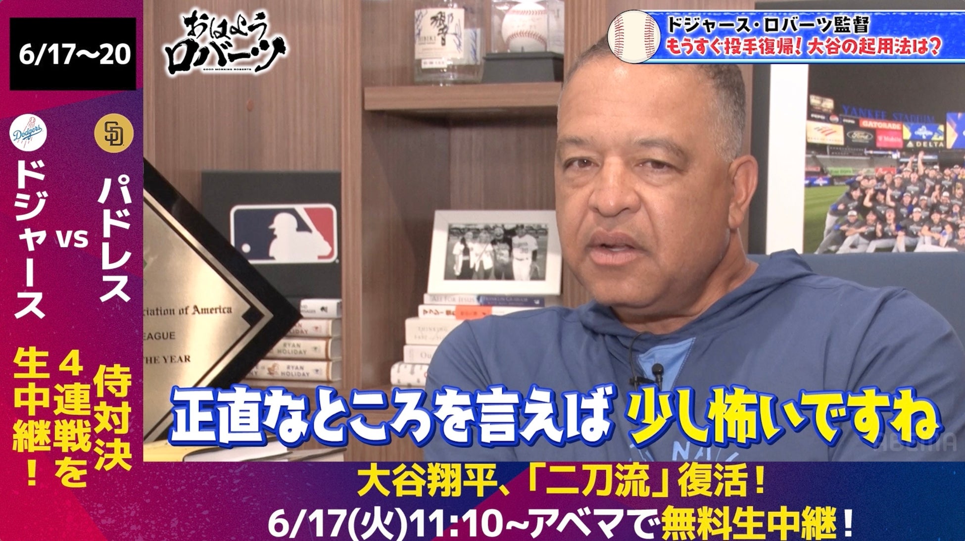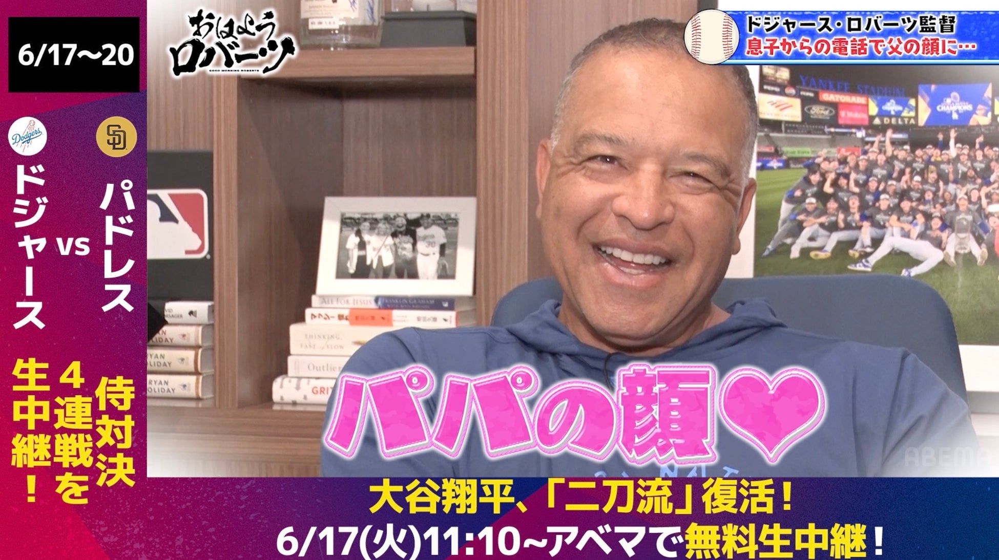 新しい未来のテレビ「ABEMA(アベマ)」は、大谷翔平、ベッツ、フリーマンをはじめ、多くのスター選手が所属するロサンゼルス・ドジャースを率いて昨シーズンのワールドチャンピオンに導いた名将、デーブ・ロバーツ氏への「ABEMA」独占のインタビュー企画『おはようロバーツ』を、2025年6月16日(月)朝8時より放送いたしました。(https://abema.tv/video/episode/239-209_s30_p11)