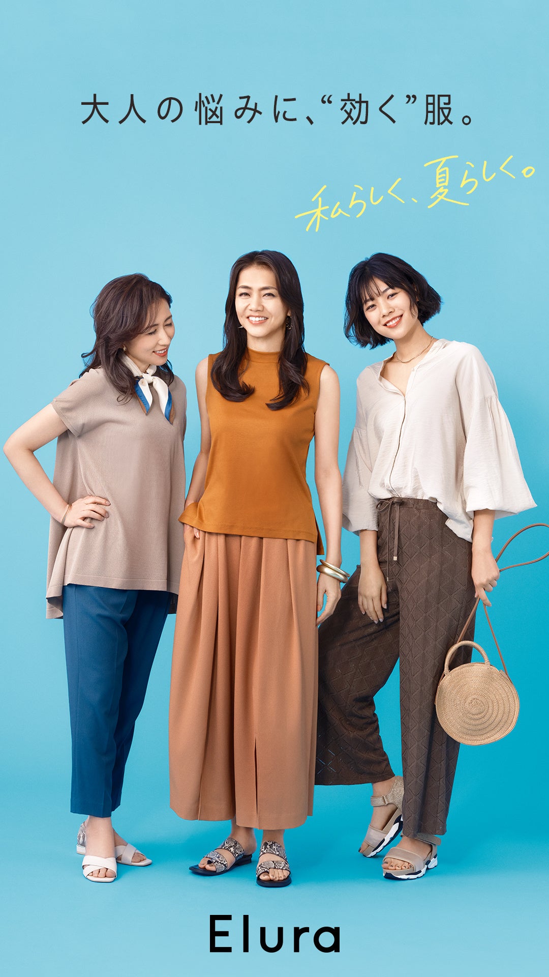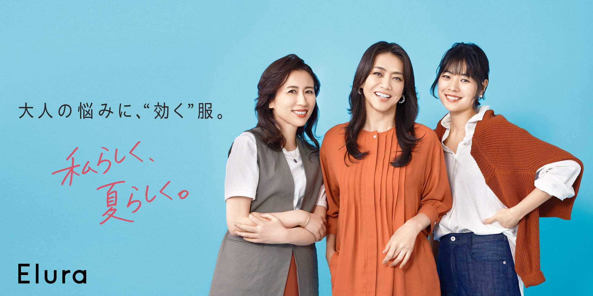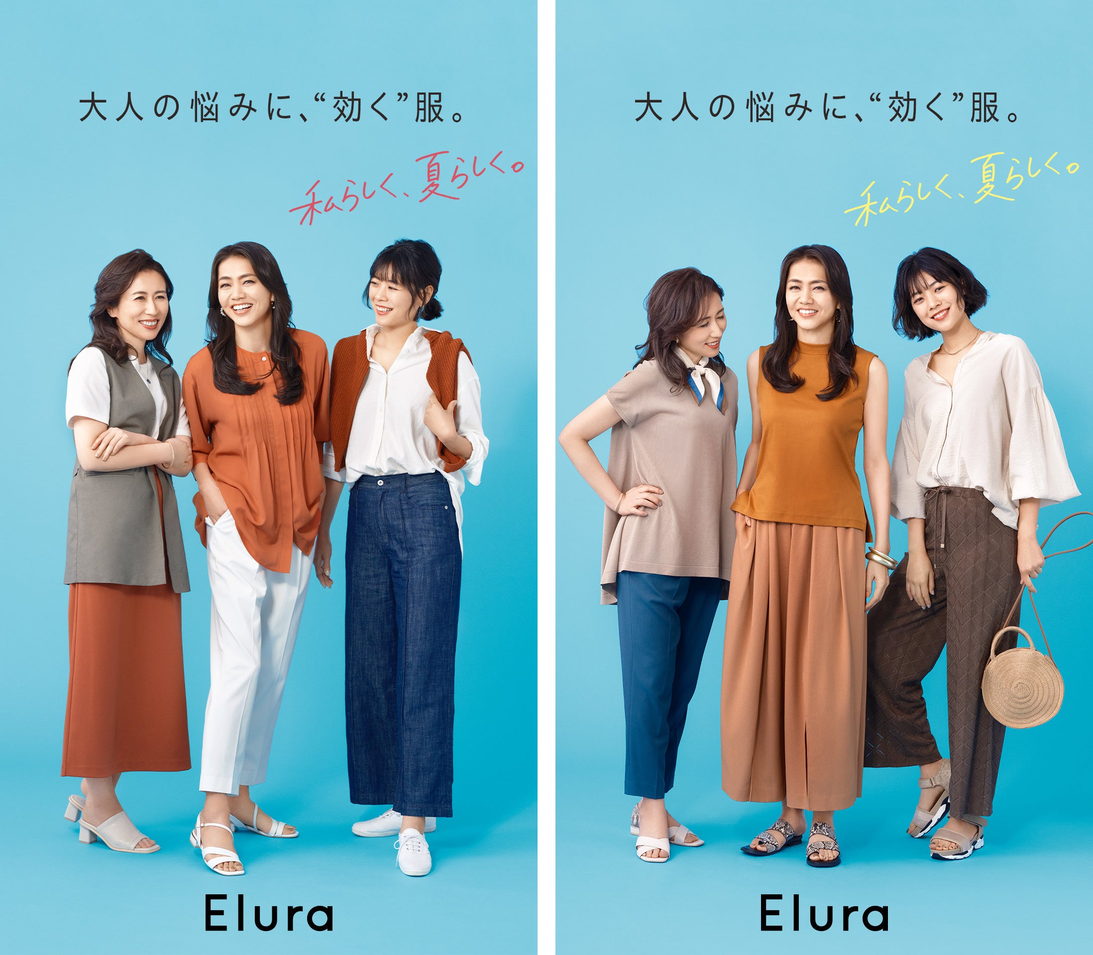 “大人の悩みに効く服”Eluraがモデル前田典子さん/元TBSアナ堀井美香さん/モデル&料理家の浅野美奈弥さんを起用した夏ビジュアルを4月15日(金)に公開