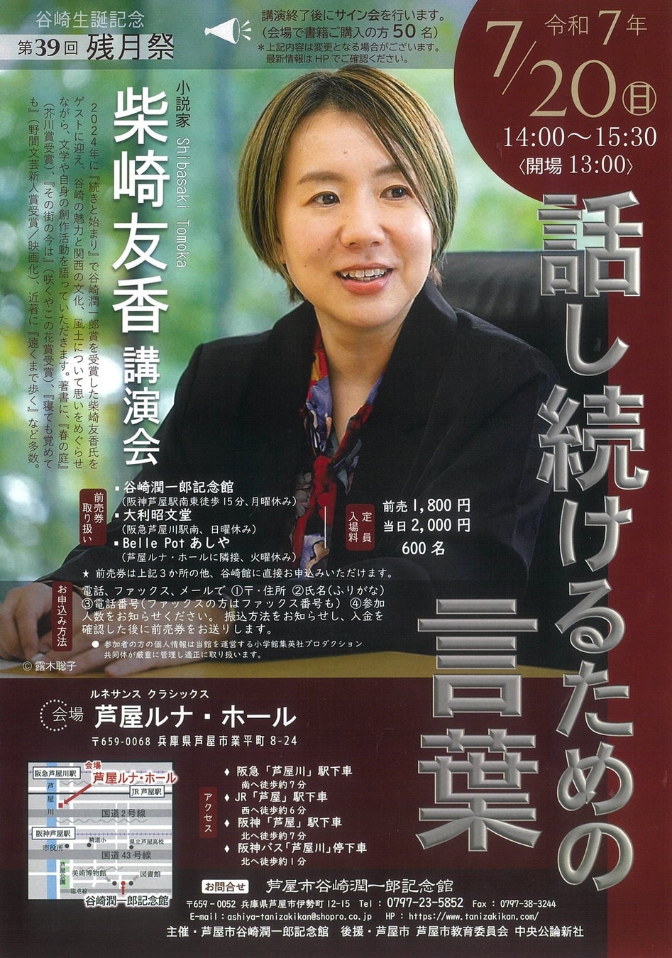 谷崎生誕記念 第39回残月祭 柴崎友香 講演会「話し続けるための言葉」開催