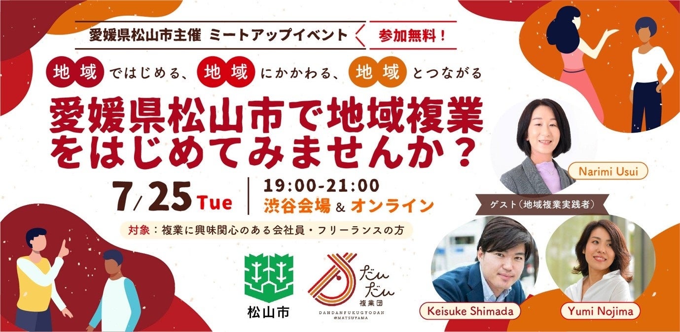 愛媛県松山市の中小企業と都市部複業人材のマッチング事業『だんだん複業団』 複業実践者と希望者が集う交流イベント 渋谷にて7月25日開催