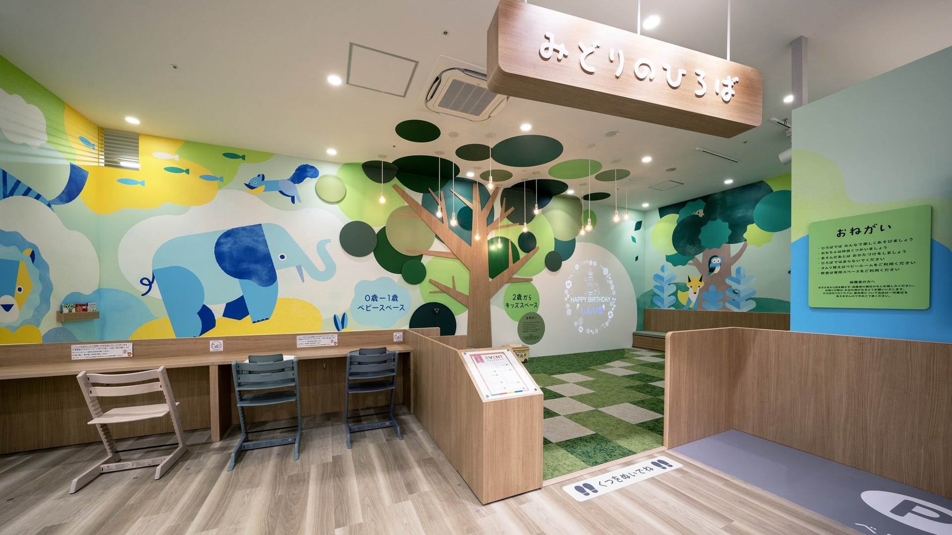 また、これまで本プロジェクトで行ったリニューアルにおいて、お客さまからの支持をいただいている遊びと、まなびのある場「みどりのひろば」も導入しています。「アカチャンホンポ ららぽーと安城店」においては、赤ちゃんと過ごせる休憩スペースや食事スペースをご用意しており、お買い物の合間のひと時をゆったりと過ごすことができます。