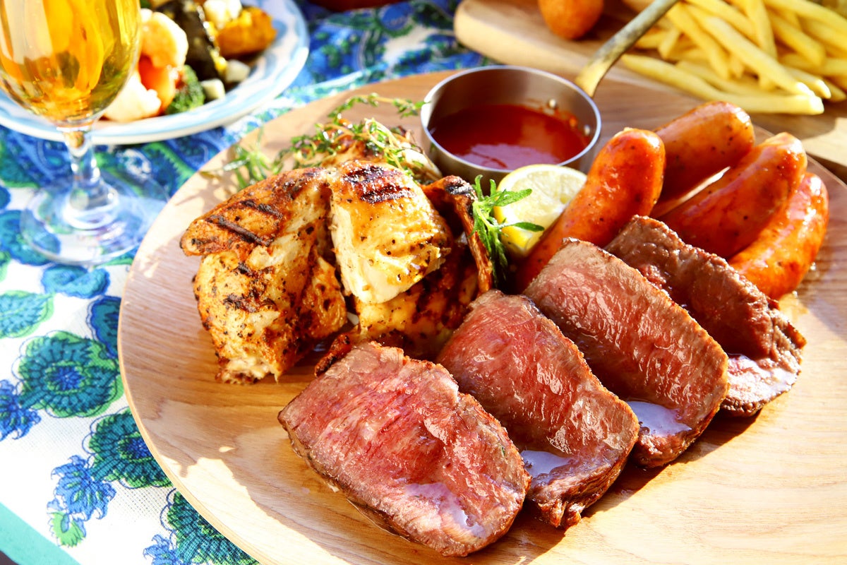 今年はブース内にグリヤードを設置して、メインを目の前で焼き上げるスタイルが復活!肉汁滴る、食欲をそそる香りが漂う、ボリューム満点の3プランをご用意しました。