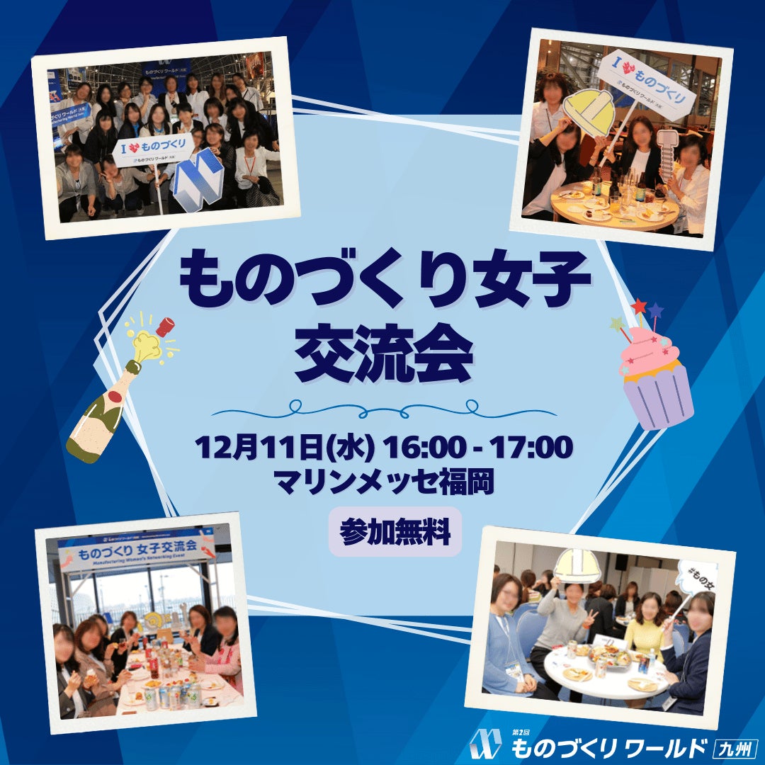 初日11日(水) 16:00~「ものづくり女子交流会」を開催!九州では昨年に引き続き2回目の開催となります。年齢・職種問わず、製造業で働く女性の方全員が対象です。ふるってご参加、ご取材ください。