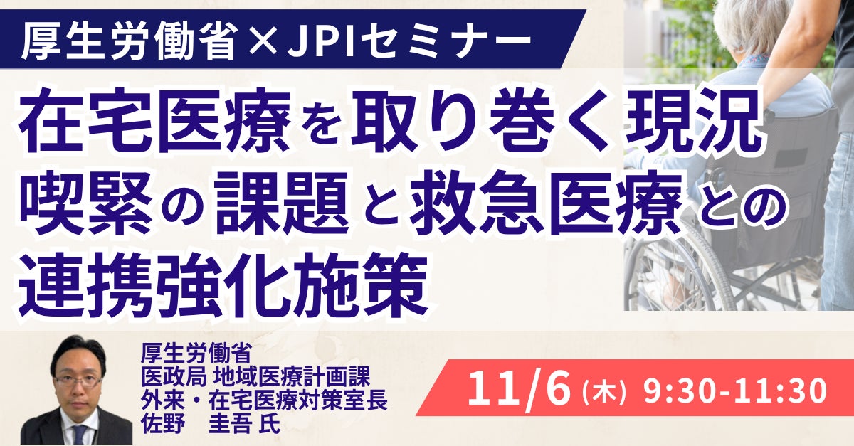 【JPIセミナー】厚生労働省「在宅医療を取り巻く現況、喫緊の課題と救急医療との連携強化施策について」11月6日(木)開催