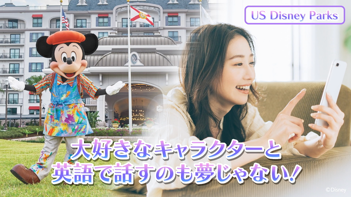アプリの開発にあたってはディズニーファンの声・ご意見を数多く取り入れています。その中から生まれたコーナーの1つが、アメリカのディズニーパーク&リゾートを舞台にした、公式の写真素材とリアルな英会話例を使ってトレーニングすることができる「US Disney Parks」のコーナーです。「パークで大好きなキャラクターと英語で話したい!」というディズニーファンの熱い思いを受けて誕生しました。今回のCMはこちらのコーナーを紹介した内容になっています。