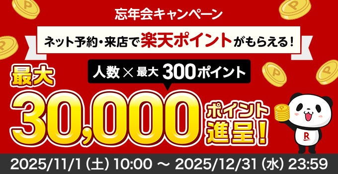 2025年も残すところ2か月となり、一年の労をねぎらい来年への活力を養う忘年会シーズンが目前に迫っています。「楽天ぐるなび」では、楽天ポイントが最大30,000ポイント貯まるキャンペーンを用意し、皆さまからのご予約をお待ちしています。