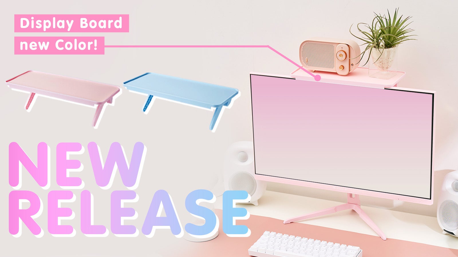 推し活・淡色インテリアにもぴったり。モニター上の空間を有効活用できる便利アイテム、ディスプレイボード「PXTS1」に新色登場!“ピンク”と“ブルー”で、もっと自分らしいデスクへ。