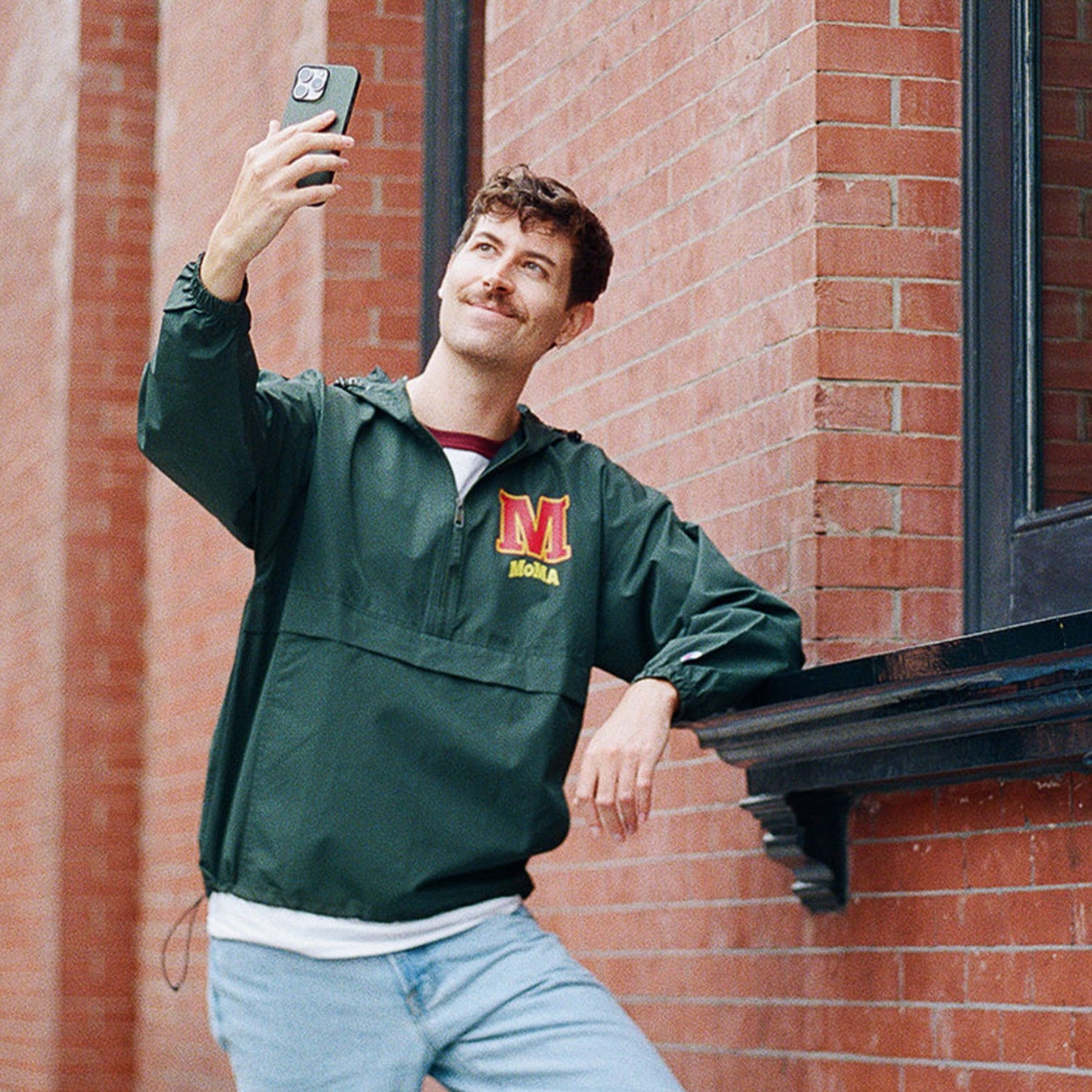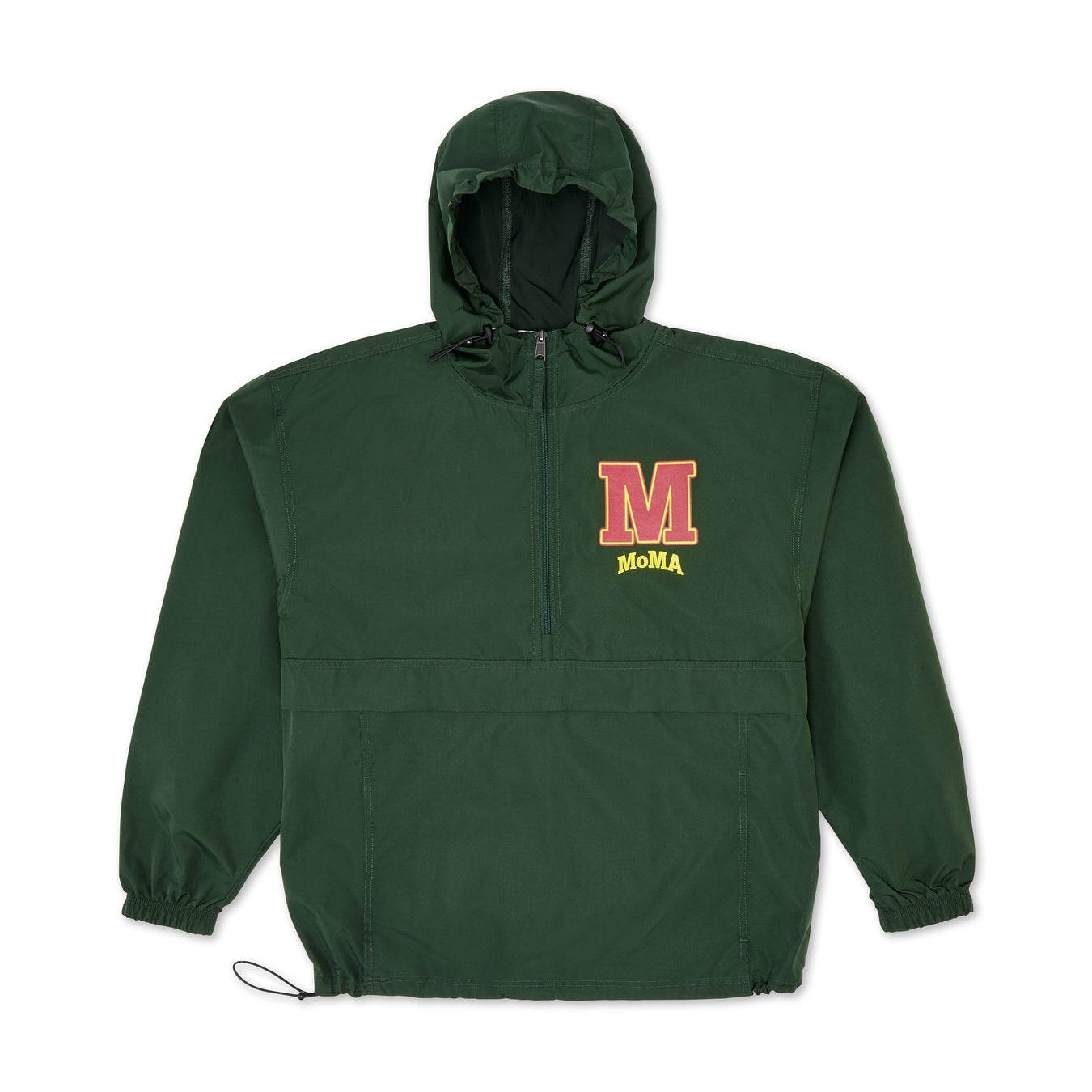 ハーフジッパーと調整可能なドローストリング付きフードが特徴。左胸の部分にはMoMAのロゴ、背面には「The Museum of Modern Art」の文字をあしらいました。