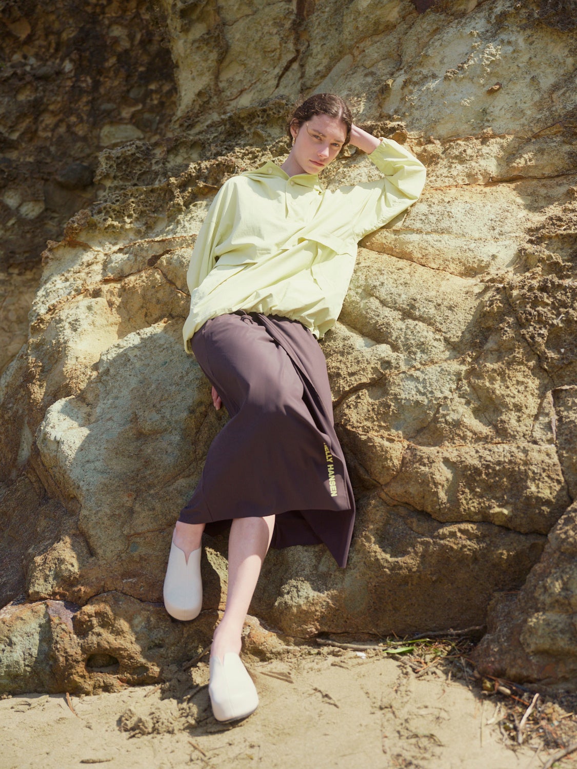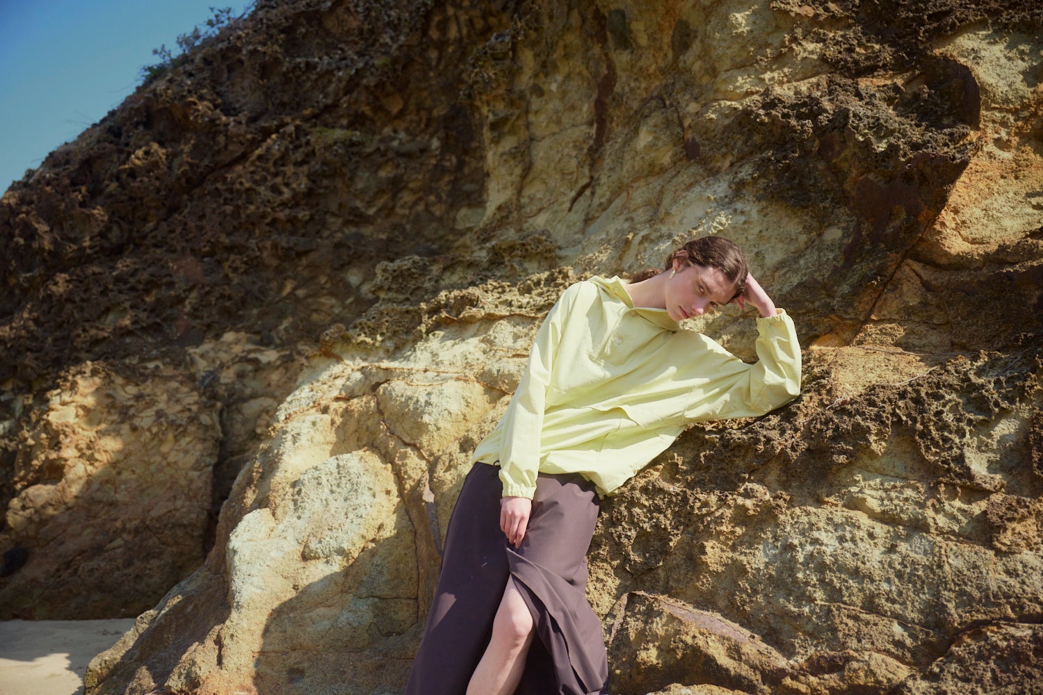 陽射しに映えるライムイエローで別注したアノラックパーカーは、コットンタッチの軽い質感が夏らしい一着。