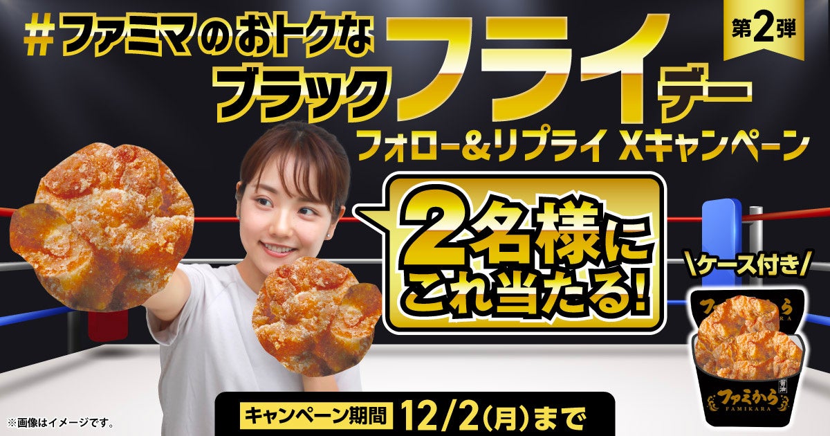 ファミリーマートは、2024年11月19日(火)から実施している「ファミマのブラック『フライ』デー」キャンペーンの「ファミから(醤油または塩)」の引き換えを2024年11月26日(火)から開始します。