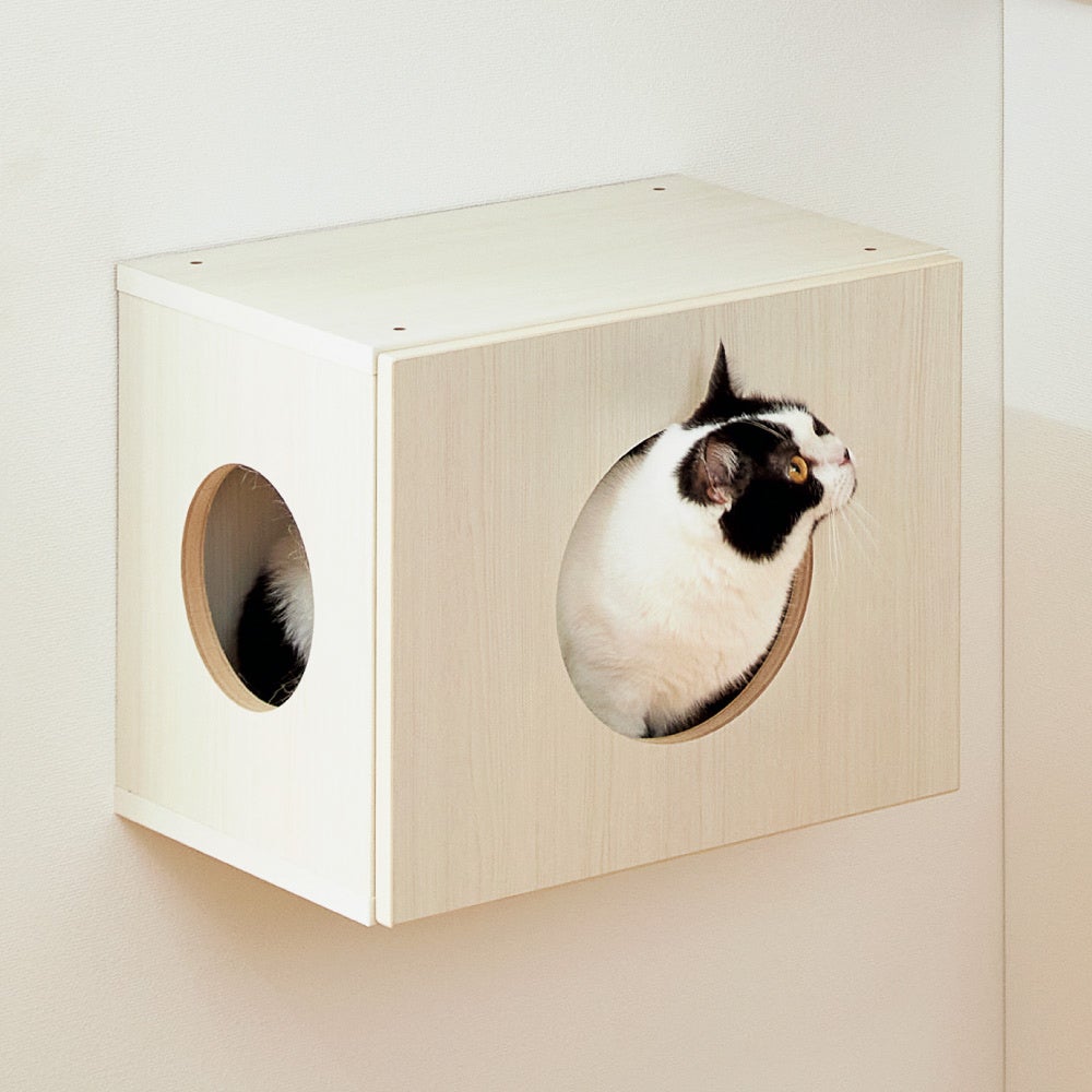 壁付けと床置きの2WAYで使えるネコハウス 壁付けキャットボックス (穴ありタイプ)