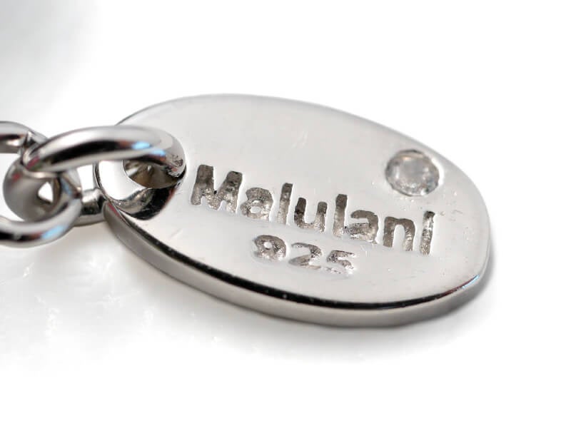 キラリと光るオリジナルチャームには、「神に護られた」という意味のハワイ語「Malulani」と刻印。