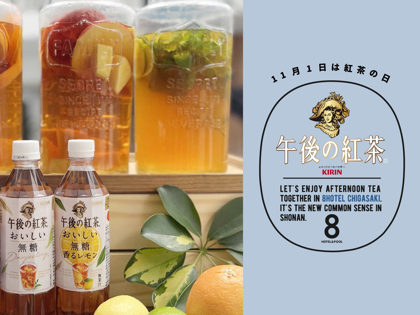 8HOTEL CHIGASAKI×午後の紅茶11月1日「紅茶の日」を記念した限定プラン。紅茶の香り広がる8HOTELで特別な一日を。