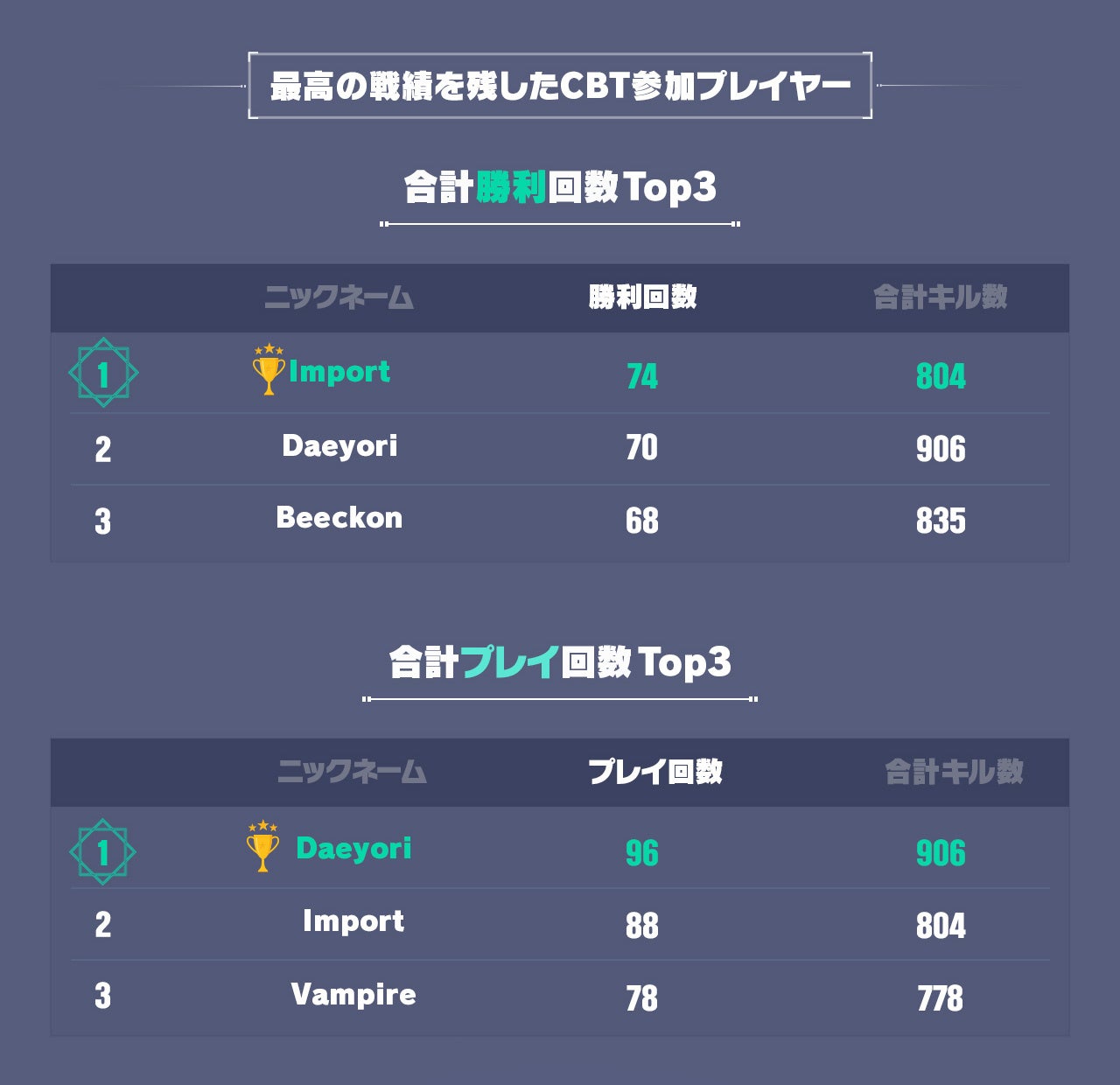 2日間のCBTでプレイされた5対5の戦闘数は約2万試合で、総プレイ時間は1年分に相当する52.5万分間にもおよびました。