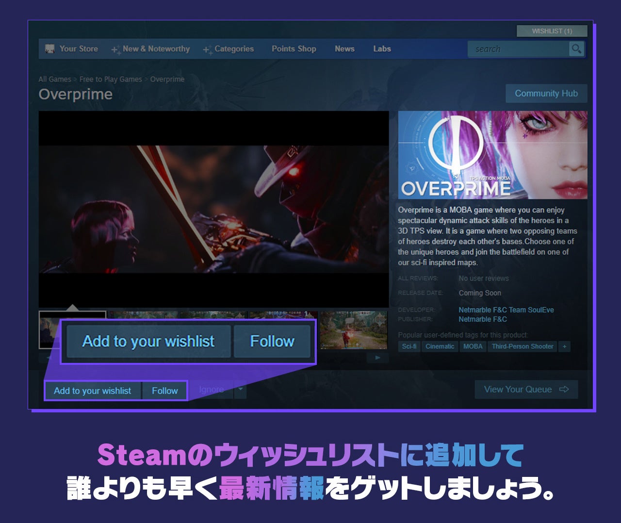グローバルサービスを目指してPC(Steam)向けに開発を進めている『OVERPRIME』は、3D TPS(サードパーソン・シューティング)とMOBA(マルチプレイヤーオンラインバトルアリーナ)のジャンルを融合し、双方の長所をSF感あふれる美しい戦場で楽しむことができるエキサイティングなゲームです。