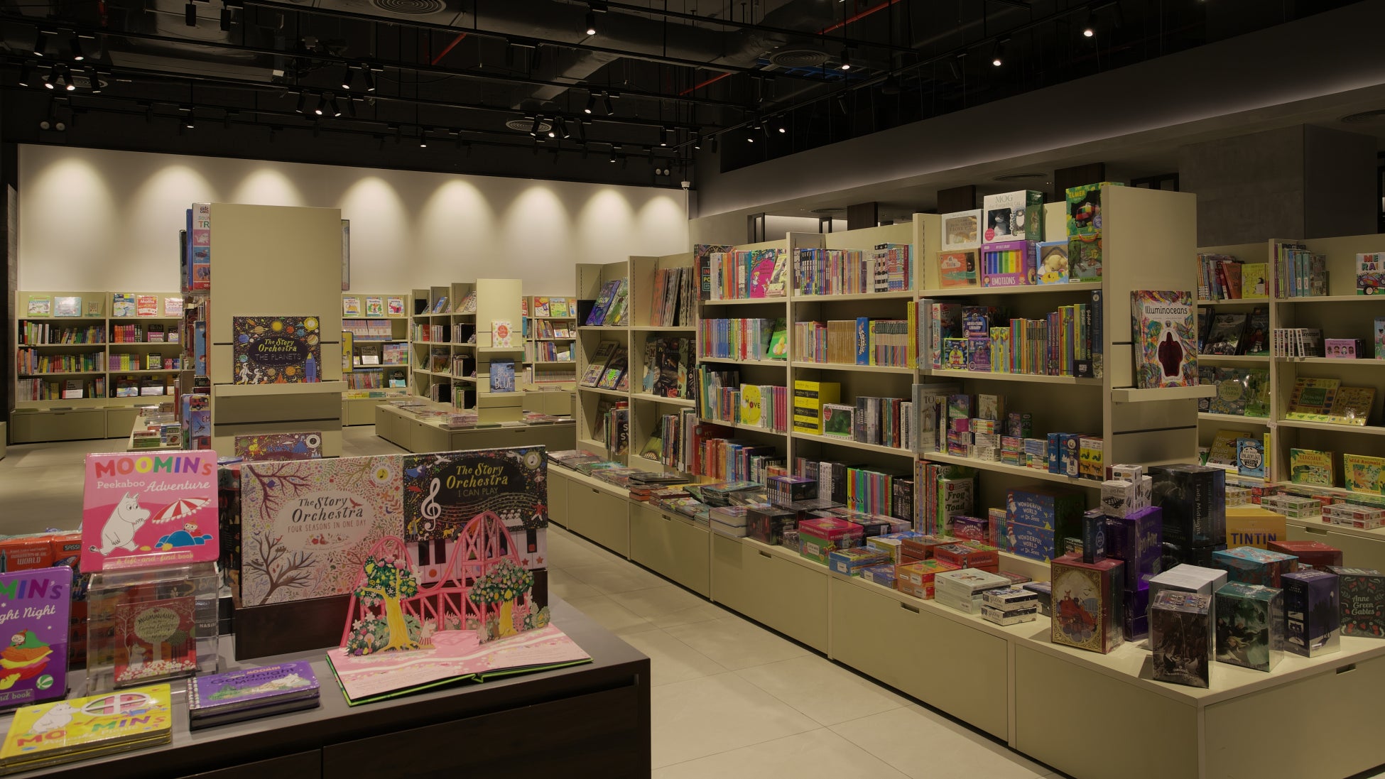 店舗のコンセプトは、"Enjoy your child's growth together"に、ニューファミリーをメインターゲットに据え、両親が子どもたちの成長を楽しみながら育めるよう、児童書や学習参考書をはじめ、コミック、文学、アート、デザイン、人文科学、ライフスタイルなど、さまざまな分野の書籍を7万冊取り揃えているカンボジア国内最大級の書籍数と広さを誇る「BOOK & CAFE」形式のライフスタイル提案型書店です。
