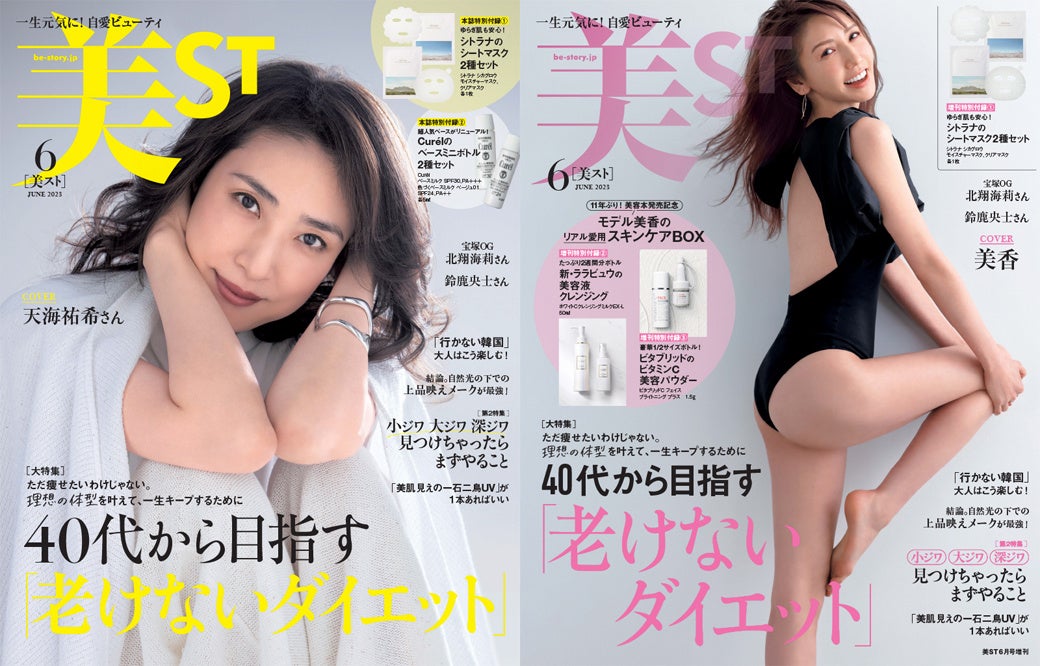 『美ST』6月号、本誌表紙は天海祐希さん、増刊表紙はモデルの美香さん!本誌と増刊で変わる豪華スキンケア付録に大注目