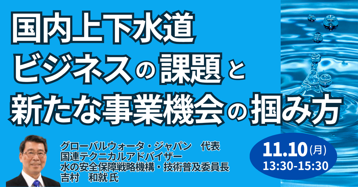 【JPIセミナー】「国内上下水道ビジネスの課題と新たな事業機会の掴み方」11月10日(月)開催