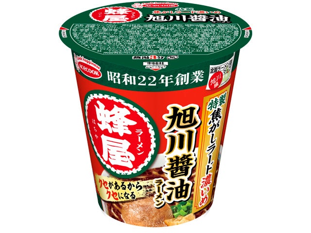 ① 北海道・旭川の老舗有名店「蜂屋」とのコラボ第3弾!看板メニュー醤油ラーメンの「特製焦がしラード濃いめ」のクセになる味わいをカップめんで再現!