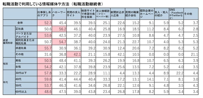 「仕事探し系のアプリ」52.3%、「ハローワーク」45.4%、
