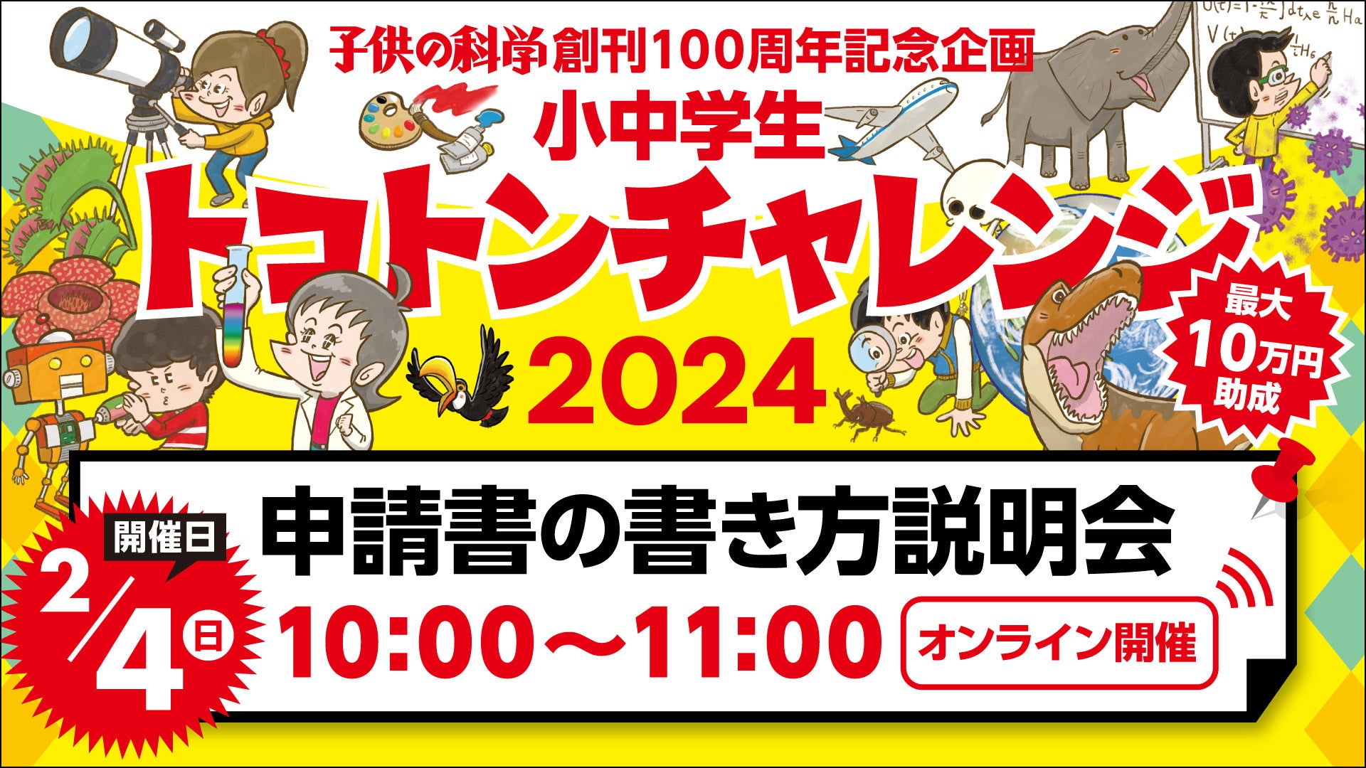 最大10万円助成!「小中学生トコトンチャレンジ2024」申請書の書き方説明会を2/4(日)に開催《雑誌『子供の科学』創刊100周年記念プロジェクト》