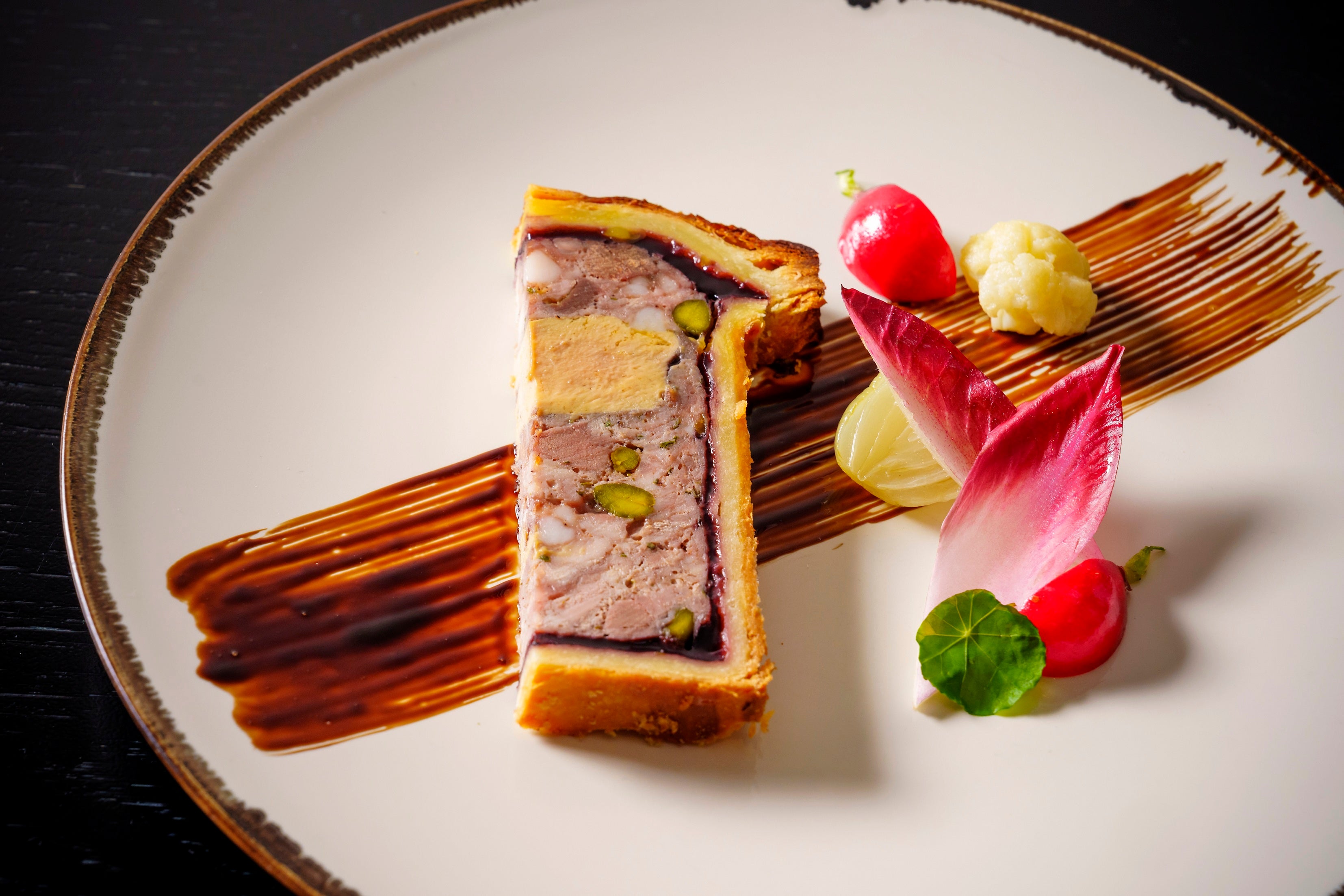 - 黒ほろほろ鳥、碁石鶏、小鳩とフォアグラのパテ アンクルート