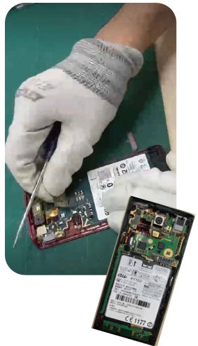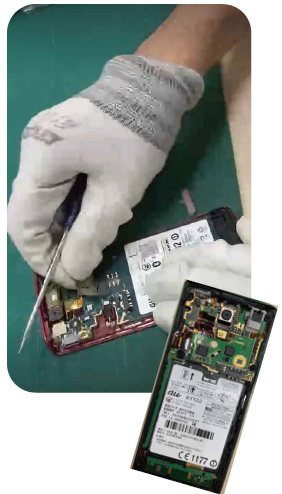 使用済みスマートフォンの資源リサイクル率99.8%を実現している「KDDIのスマートフォン手分解」に挑戦。それぞれの部品がどのように再利用されているかを学ぶことができます。