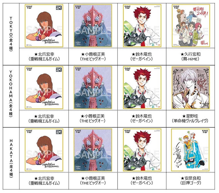 サンライズワールドTOKYO、YOKOHAMA、HAKATA オリジナル新商品&物販購入特典色紙 公開!