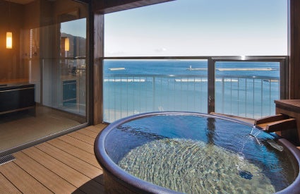 コラボを記念して、2月10日(土)~14日(水)の期間限定で、露天風呂付き客室にバラ風呂が登場いたします。ロマンチックな雰囲気の中、ごゆっくりと滞在をお楽しみください。