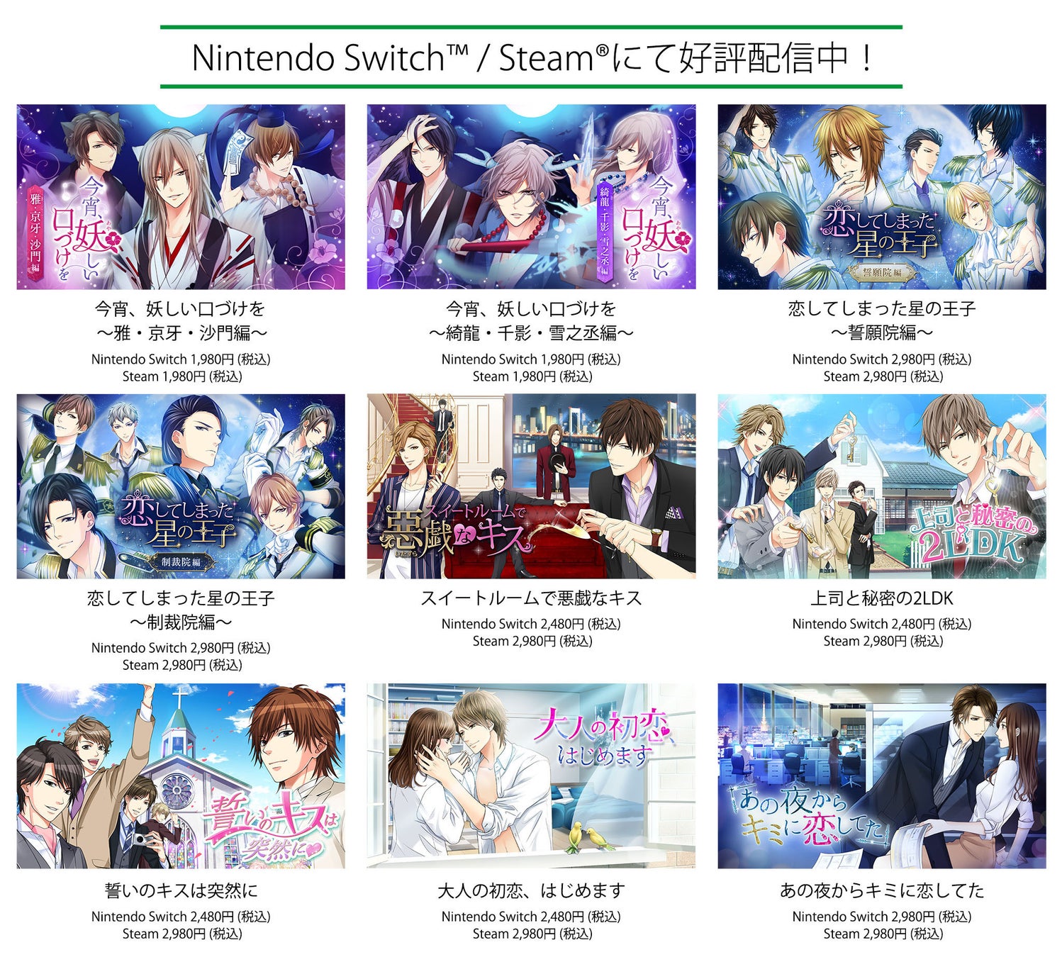 ボル恋人気タイトルをNintendo Switch・Steamにて配信中!