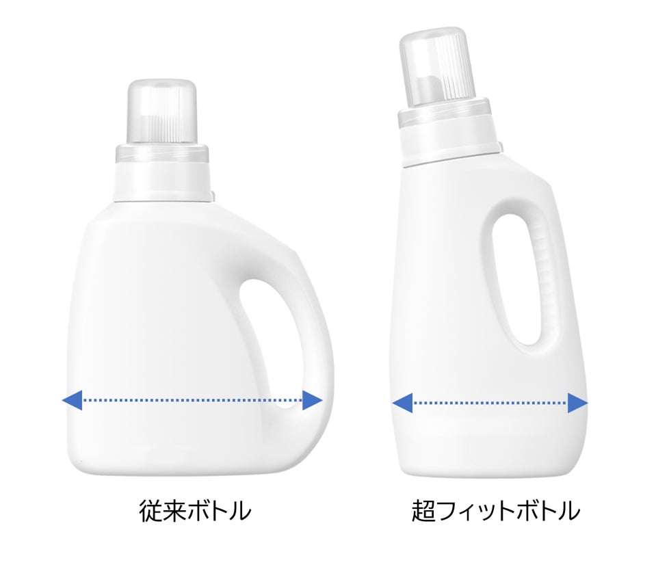 また、今回のリニューアルに合わせて、ユニバーサルデザイン視点を取り入れ、持ちやすく・注ぎやすく・スリムで収納しやすい新本体ボトル“超フィットボトル”を採用しました。