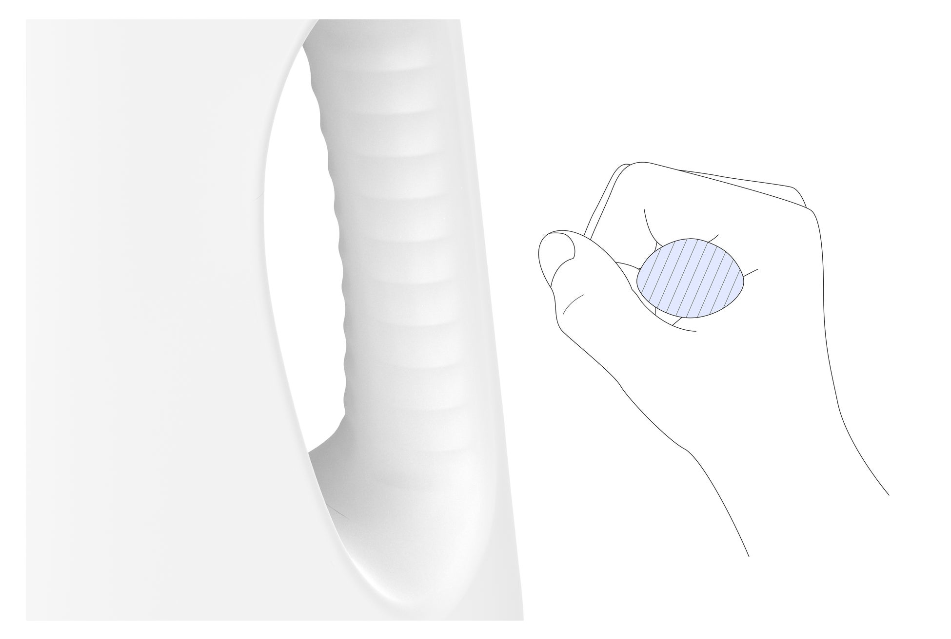 手の中で安定しやすいレモン型の断面を採用し、凹凸の滑り止めが指にフィットしやすい
