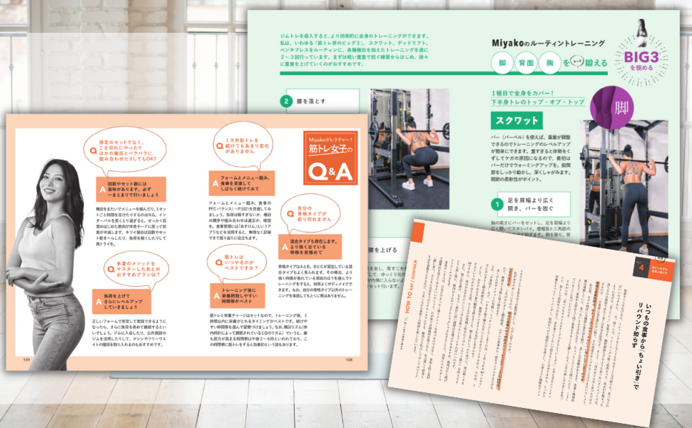 ▼「Miyakoのルーティントレーニング」「筋トレ女子の食事の続け方」「筋トレ女子のQ&A」も掲載!