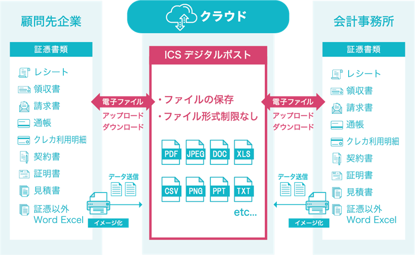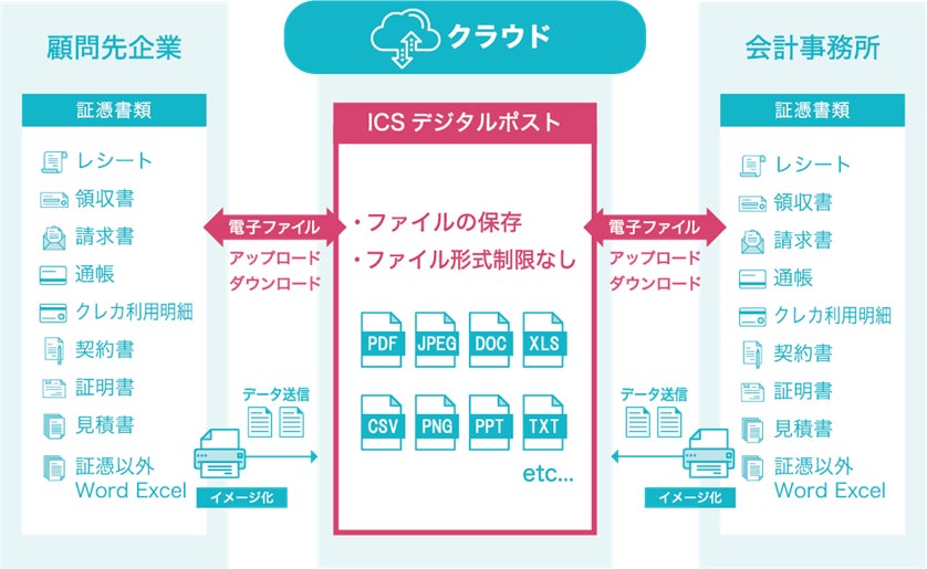 その第一弾として、業務効率化に即効性の高い会計事務所と顧問先間の資料共有を手軽に行うことが可能な「ICSデジタルポスト」を開発、提供を開始します。