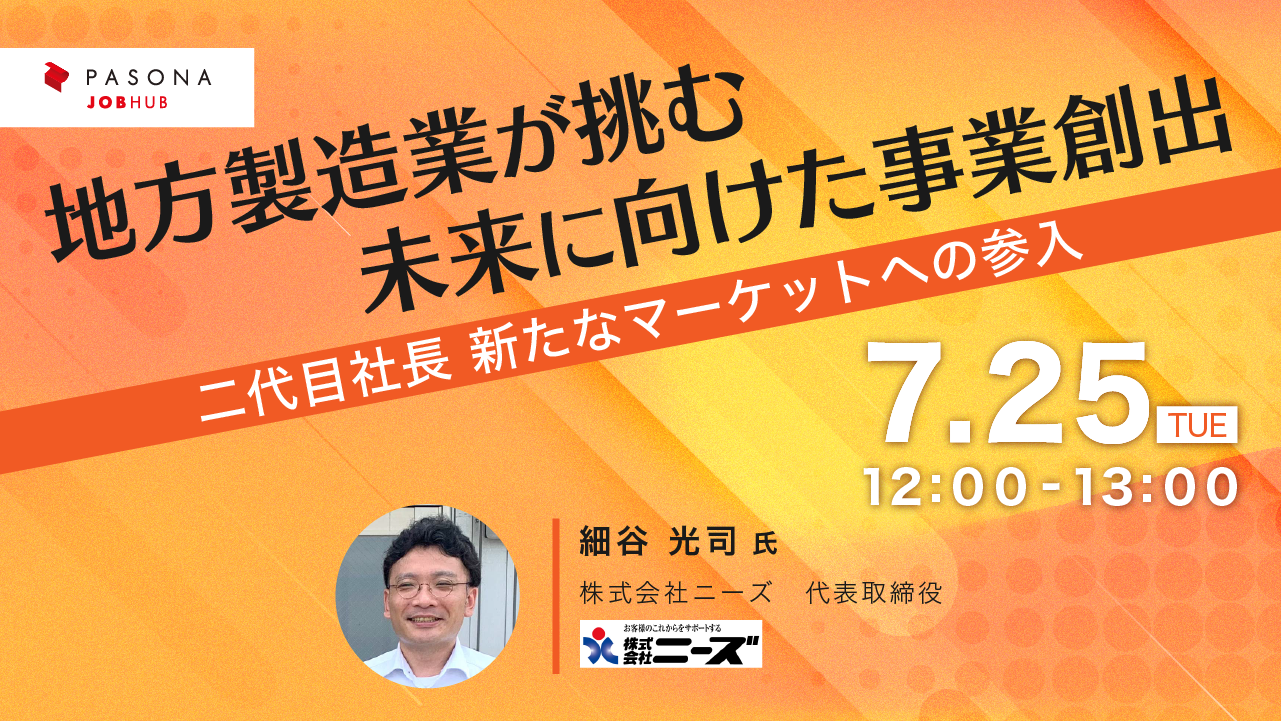 パソナJOB HUB主催ウェビナー『地方製造業が挑む 未来に向けた事業創出』 7月25日開催