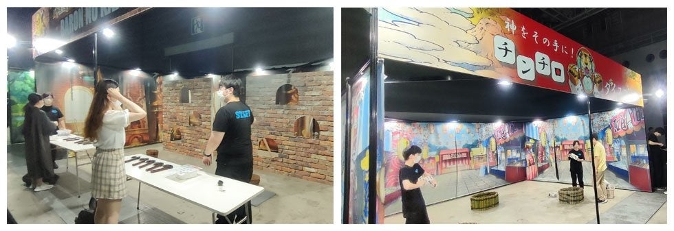 「強化? 進化? それとも、武器合成?『BARON NO KAJIYA』」は、ゲーム内で武器強化・進化を行うバロンの鍛冶屋をモチーフに作られています。小さな斧をできるだけたくさん炉に投げ入れるため、真剣に挑戦するファンの姿が見られました。