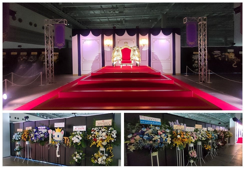 さらに、玉座の両側には、お取引先各社より贈られた沢山の花が飾られ、期待に胸が膨らむ華やかなエントランスとなっていました。