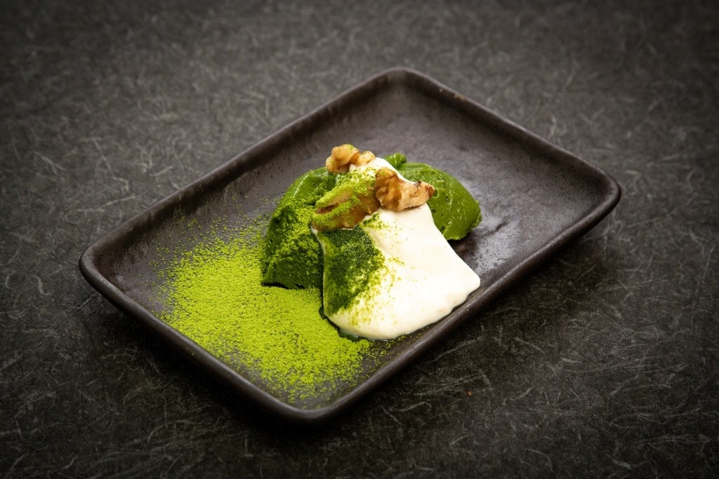 「小割烹おはし ゑびすりびんぐ」は、SDGsの観点からも、熱意ある生産者の皆様の手により大切に育てられた国産食材を積極的に活用し、世界から訪れるゲストにその素晴らしさをご紹介していきたいと考えています。甘味にも使用している「京都宇治 藤井茶園」のお茶もその一つです。