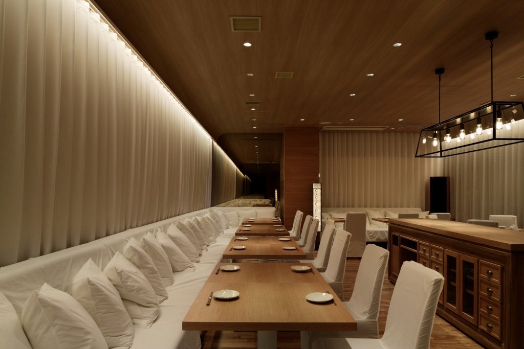 スタイリッシュで広々とした空間の「メインダイニング」を中心に、一緒に過ごす人と時間を忘れて語り合える「ボックス席」や「カウンター席」、ご自宅で寛いでいるかのようにゆったりと過ごせる「ソファー席」など、様々なシーンで居心地良くお過ごしいただけるお席をご用意しています。