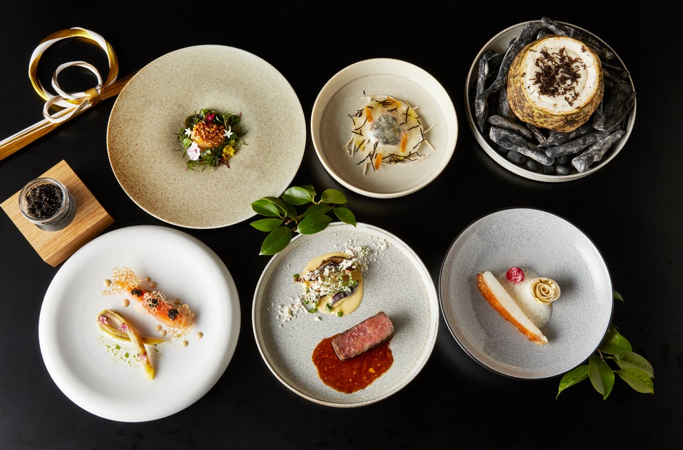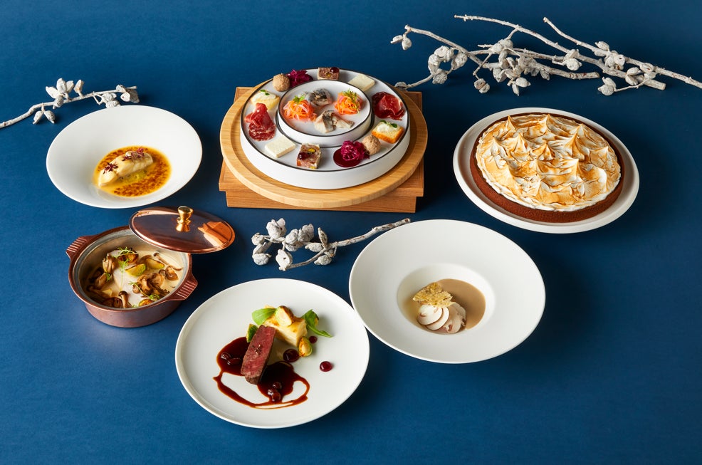 ランチには4品または5品のコースをご用意し、メインは「鹿の薪焼き 発酵いちごピューレ 焦がしレンズ豆 鹿のラグーラビオリ」または「国産牛フィレまたは横濱ビーフサーロイン 冬の森 ソースフィナンシエール」よりお選びいただけます。ディナーにはキャビアやいくら、トリュフを地産地消の新鮮な食材に組み合わせ、贅沢な2種類の6品コースをご用意いたしました。みなとみらいの街並みと横浜港を一望する最上階のレストランで、一年の締めくくりと新年のお祝いにふさわしいひとときをご堪能ください。
