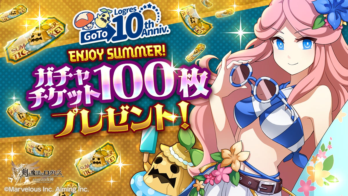夏休みの特別なプレゼントとして、サマーガチャチケット100枚を期間中の初回ログイン時にお贈りします。